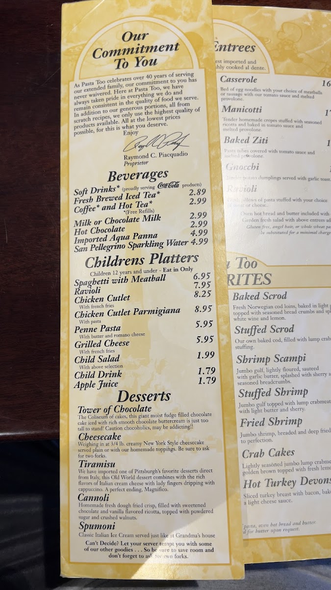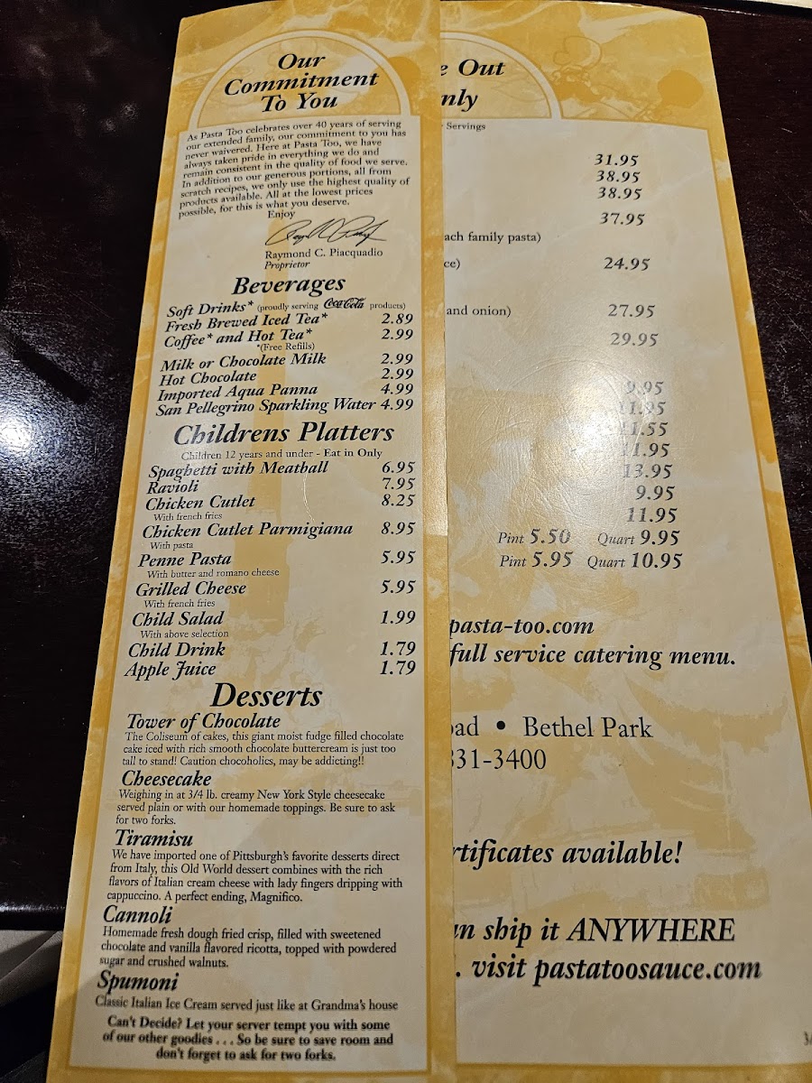 we have imported one of pittsburgh's favorite desserts direct from italy, this old world dessert combines with the rich flavors of italian cream cheese with lady fingers dripping with cappuccino. a perfect ending, magnifico.